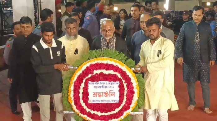 বরিশালে একুশের প্রথম প্রহরে শহীদদের প্রতি শ্রদ্ধা