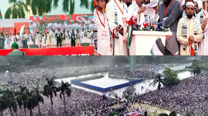 শনিবার ১২ এপ্রিল রাজধানীর সোহরাওয়ার্দী উদ্যানে ‘প্যালেস্টাইন সলিডারিটি মুভমেন্ট বাংলাদেশ’-এর ব্যানারে ‘মার্চ ফর গাজা’ কর্মসূচি পালন করা হয়। এতে অংশ নেন সারা দেশ থেকে আগত লাখ লাখ মানুষ।