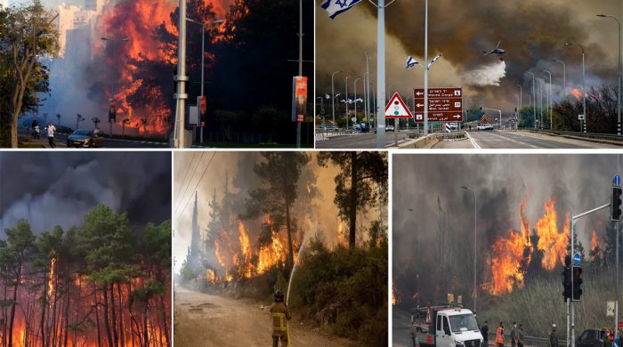 ভয়াবহ দাবানলে পুড়ছে দখলদার ইসরায়েল। তীব্র তাপ এবং প্রবল বাতাসের কারণে দখলদারদের বেশ কয়েকটি শহরে আগুন এই আগুন ইসরায়েলের দখল করা জেরুজালেমের বিভিন্ন জায়গা পর্যন্ত ছড়িয়ে পড়েছে। এরমধ্যে দেশটির বাণিজ্যিক রাজধানী তেলআবিব থেকে জেরুজালেম যাওয়ার মহাসড়ক পর্যন্ত আগুন ছড়িয়ে।