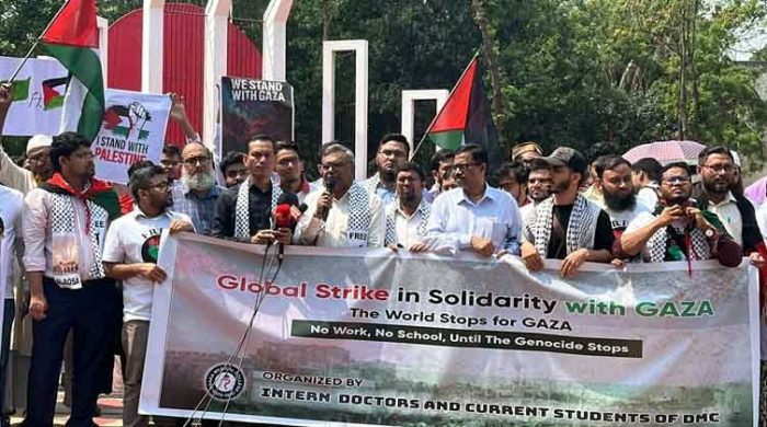 এর আগে, গতকাল রবিবার রাতে ঢাকা বিশ্ববিদ্যালয় এলাকায় বিক্ষোভ মিছিল করে সাধারণ শিক্ষার্থীরা। একই ঘটনায় রাজধানীর বিজয় নগর এলাকায় বিক্ষোভ মিছিল করে বাংলাদেশ যুব অধিকার পরিষদ। ইসরাইলি আগ্রাসনের নিন্দা, ফিলিস্তিনের নাগরিকদের উপর চালানো গণহত্যার প্রতিবাদ ও স্বাধীন ফিলিস্তিনের দাবি উঠে আসে তাদের স্লোগানে। এসময় সোমবার জেনারেল স্ট্রাইকে দেশবাসীকে অংশ নেয়ার আহ্বান জানান শিক্ষার্থীরা।