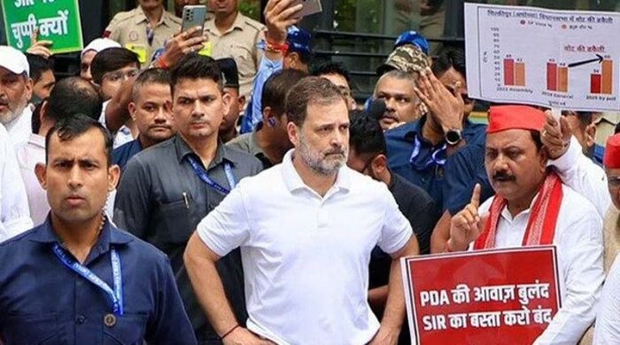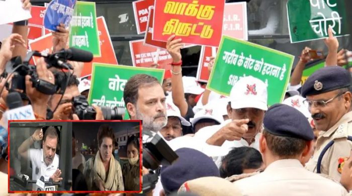 ।।বিকে আন্তর্ঝাতিক ডেস্ক।।দিল্লিতে নির্বাচন অভিমুখে মিছিল থেকে বিরোধী দলীয় নেতা রাহুল গান্ধী ও প্রিয়াঙ্কা গান্ধীকে আটক করেছে দেশটির পুলিশ। সোমবার ১১ আগস্ট স্থানীয় সময় বেলা সাড়ে ১১টার দিকে এসআইআর ও