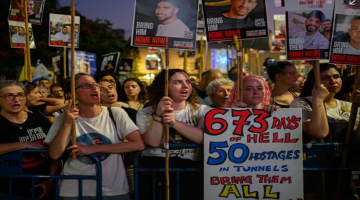 ।।বিকে আন্তর্জাতিক ডেস্ক।।নেতানিয়াহুর ইসরায়েলের গাজা সিটি দখলের পরিকল্পনার বিরুদ্ধে তেল আবিবসহ বিভিন্ন শহরে ব্যাপক বিক্ষোভ শুরু হয়েছে। শনিবার ৯ আগস্ট সন্ধ্যায় হাজার হাজার ইসরায়েলি রাস্তায় নেমে আসেন। তারা গাজা সিটি
