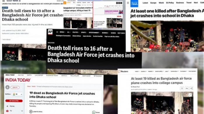 ।।বিকে আন্তর্জাতিক ডেস্ক।।রাজধানীর উত্তরায় বাংলাদেশ বিমানবাহিনীর একটি প্রশিক্ষণ বিমান মাইলস্টোন স্কুল অ্যান্ড কলেজের একটি ভবনে বিধ্বস্ত হওয়ার ঘটনা আন্তর্জাতিক গণমাধ্যমেও ব্যাপকভাবে প্রচারিত হয়েছে। সোমবার ২১ জুলাই দুপুরে ঘটে যাওয়া এই