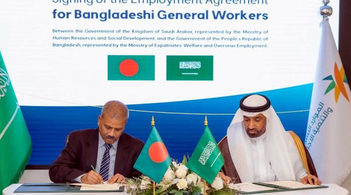 ।।বিকে ডেস্ক।।বাংলাদেশ ও সৌদি আরবের মধ্যে সাধারণ কর্মী নিয়োগ সংক্রান্ত একটি গুরুত্বপূর্ণ দ্বিপাক্ষিক চুক্তি আজ সোমবার রিয়াদে স্বাক্ষরিত হয়েছে। এই চুক্তিকে দুই দেশের মধ্যে শ্রমবাজার সম্প্রসারণ ও অভিবাসন ব্যবস্থার ইতিহাসে