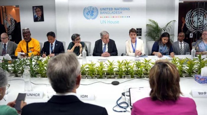 ।।বিকে ডেস্ক।।জাতিসংঘ মহাসচিব আন্তোনিও গুতেরেস রোহিঙ্গা ইস্যুতে বাংলাদেশকে জাতিসংঘের সমর্থন অব্যাহত রাখার কথা পুনর্ব্যক্ত করেছেন । শনিবার ১৫ মার্চ সকালে রাজধানীর গুলশানে জাতিসংঘের নতুন ভবনে এক অনুষ্ঠানে বক্তৃতাকালে তিনি এই