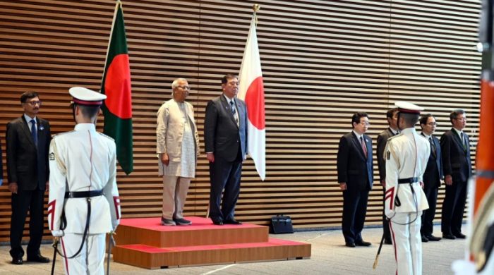 ।।বিকে রিপোর্ট।।প্রধান উপদেষ্টা অধ্যাপক মুহাম্মদ ইউনূসকে গার্ড অব অনার প্রদান করেছেন জাপানের প্রধানমন্ত্রী। শুক্রবার ৩০ মে সকালে টোকিওতে অধ্যাপক ইউনূস দেশটির প্রধানমন্ত্রীর দপ্তরে পৌঁছালে এ গার্ড অব অনার প্রদান করা