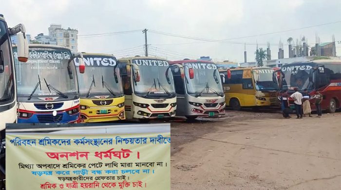 ।।বিকে রিপোর্ট।।আজ সকাল থেকে সারাদেশের সঙ্গে ময়মনসিংহ বিভাগের বাস চলাচল অনির্দিষ্টকালের জন্য বন্ধ রয়েছে। শামীম এন্টারপ্রাইজের বাস চলাচল বন্ধের সিদ্ধান্ত বাতিল, গ্রেপ্তারকৃত বাস শ্রমিকের মুক্তি, পরিবহন শ্রমিকদের নিরাপত্তা ও কর্মসংস্থানের