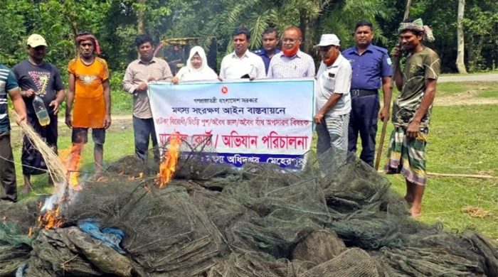 ।।বিকে রিপোর্ট।।মেহেরপুর সদর উপজেলার কালাচাঁদপুর সংলগ্ন ভৈরব নদ থেকে উদ্ধারকৃত অবৈধ চায়না দুয়ারী জাল আগুনে পুড়িয়ে বিনষ্ট করেছে উপজেলা প্রশাসন। মঙ্গলবার ৭ অক্টোবর দুপুরে মেহেরপুর সদর উপজেলা প্রশাসন ও মৎস্য