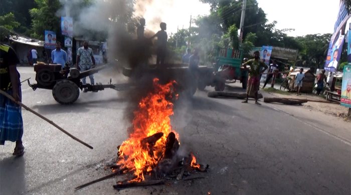 ।।বিকে ডেস্ক।।বাগেরহাটের চারটি সংসদীয় আসন সীমানা বহাল রাখার দাবিতে জেলাজুড়ে ৪৮ ঘণ্টার হরতাল ও সড়কপথ অবরোধ কর্মসূচি শুরু হয়েছে। বুধবার ১০ সেপ্টেম্বর সকাল ৬টা থেকে বিভিন্ন সড়কে আগুন জ্বালিয়ে ও