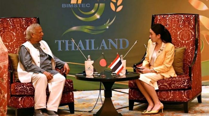 ।।বিকে ডেস্ক।।বিমসটেক সদস্য দেশগুলোকে পারস্পরিক স্বার্থ ও সবার কল্যাণে একযোগে কাজ করার আহ্বান জানিয়েছেন- বাংলাদেশের অন্তর্বতীকালীন সরকারের প্রধান উপদেষ্টা অধ্যাপক মুহাম্মদ ইউনূস। শুক্রবার ৪ এপ্রিল থাইল্যান্ডের রাজধানী ব্যাংককে বঙ্গোপসাগরীয় দেশগুলোর