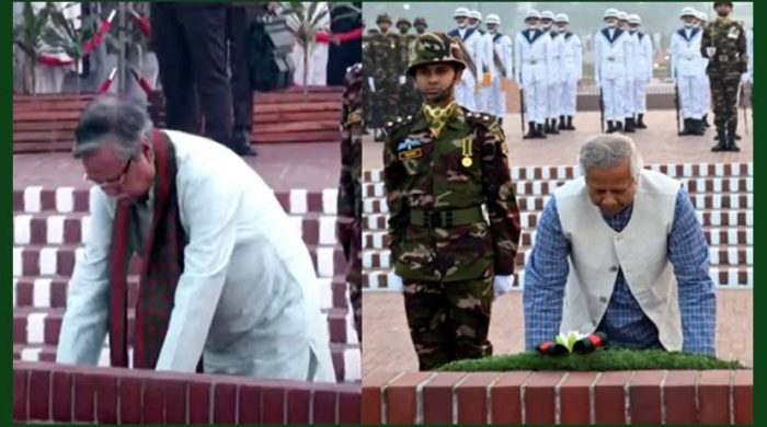 ।।বিকে রিপোর্ট।।জাতীয় স্মৃতিসৌধে ৫৫তম মহান স্বাধীনতা ও জাতীয় দিবস উপলক্ষে শ্রদ্ধা নিবেদন করেছেন রাষ্ট্রপতি মো. সাহাবুদ্দিন ও প্রধান উপদেষ্টা ড. মুহাম্মদ ইউনূস। বুধবার ২৬ মার্চ ভোর ৫টা ৫০ মিনিটের দিকে