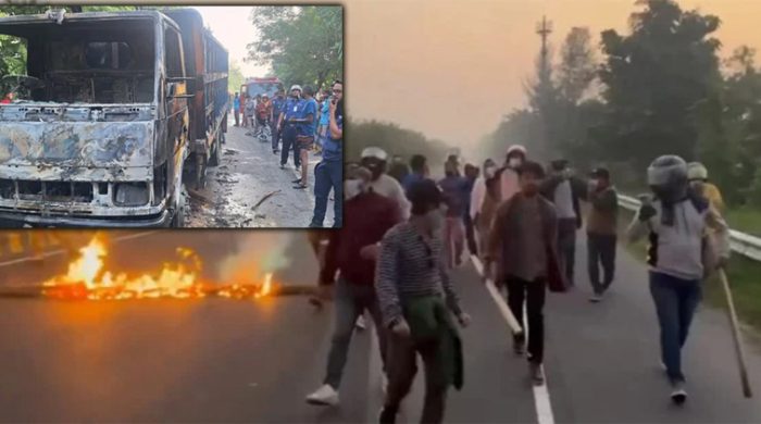 পদ্মা সেতুর সামনে এক্সপ্রেসওয়ে অবরোধ, ট্রাকে আগুন ও বাস ভাঙচুর