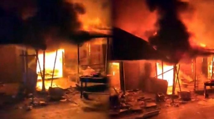 বোয়ালমারী কাদিরদী বাজারে আগুন: ১৪টি দোকান পুড়ে ছাই